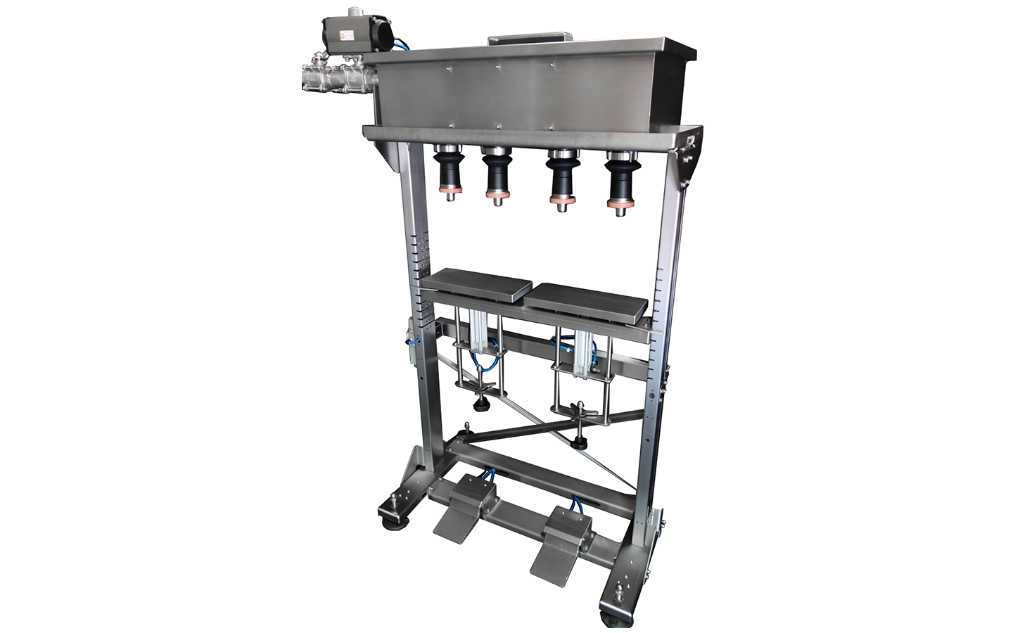 Lifting filling platforms are lifted by hand so no electricity or compressed air is required